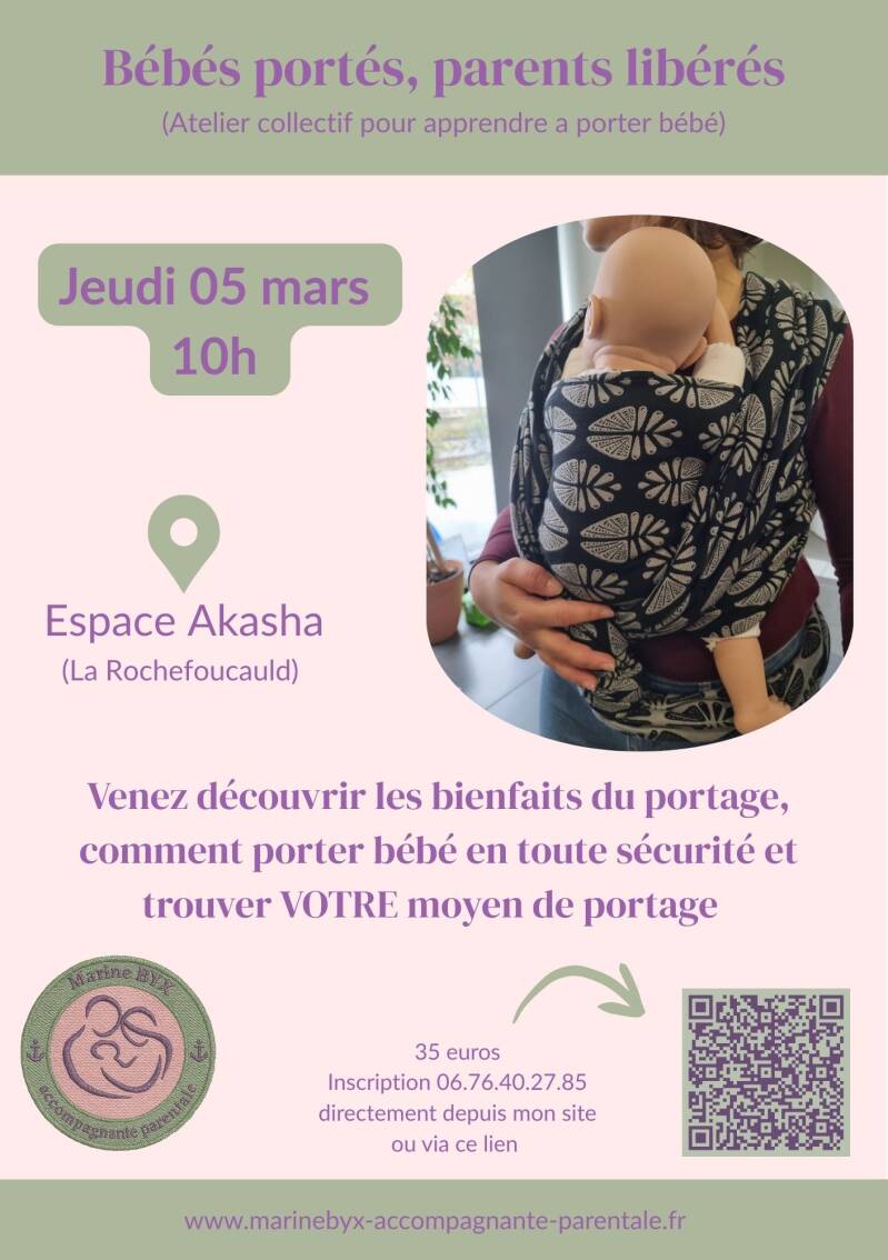 Je vous propose un atelier collectif de portage bébé, un temps doux et concret pour :